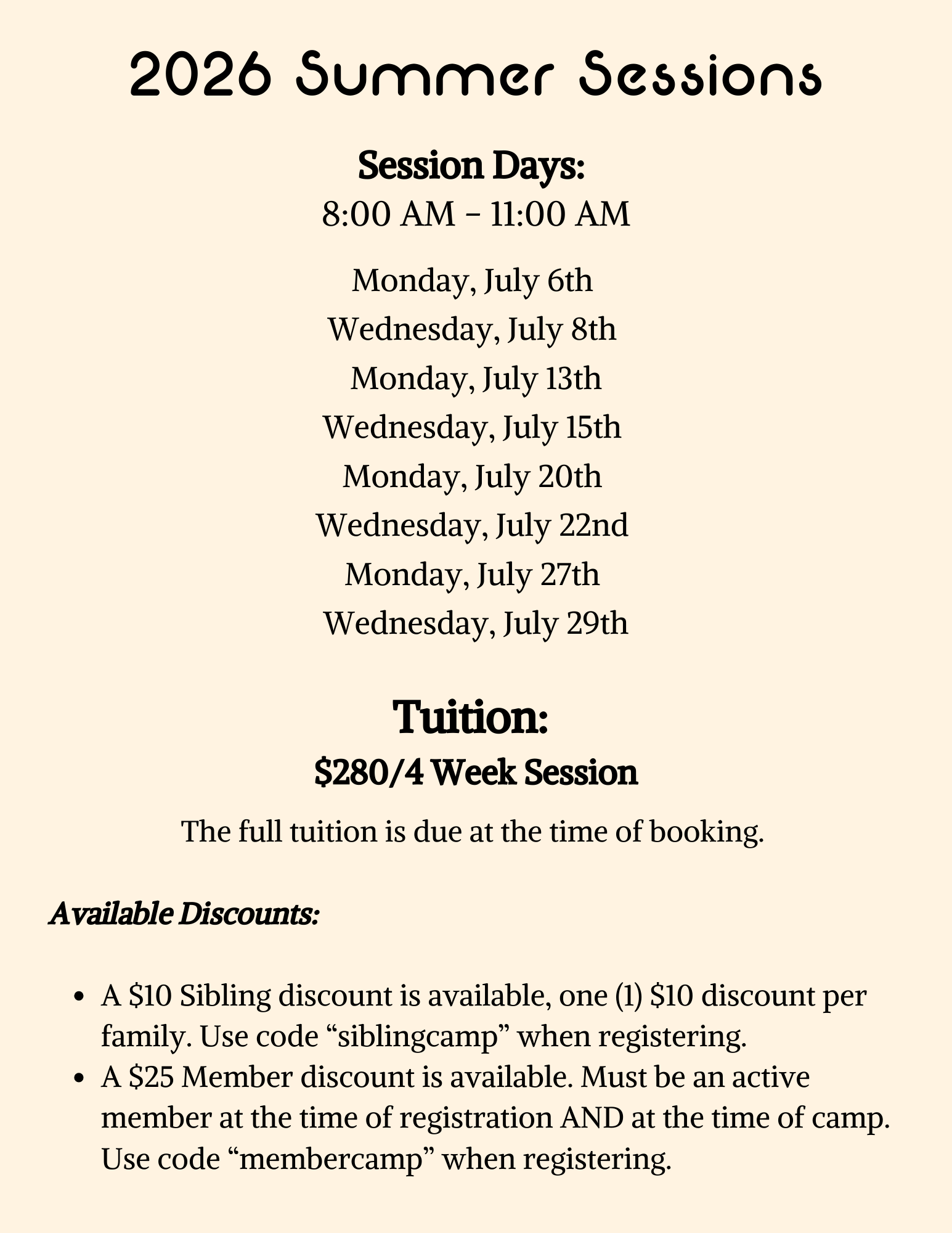 SCROLL DOWN FOR 2026 SUMMER CAMP INFO